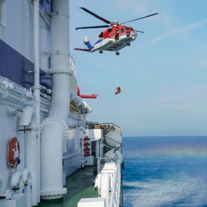We can only imagine the relief that James experienced when he heard the noise of the helicopter getting closer and then saw the powerful searchlight shining on him in the dark waters. What must it have been like when the rescuer came down, right to his side in the water and prepared him for the upward hoist into the helicopter!
